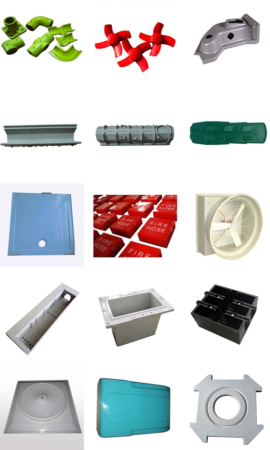 Seperating from the raw material, fiberglass compression molding includes SMC (Sheet Molding Compound ) and BMC (Bulk Molding Compound), BMC is also called as DMC (Dough Molding Compound) in Europe.
